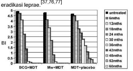 LL. Pada fase Borderline Lepromatous Leprosy (BL) antigen yang bertanggung jawab pada respon tersebut adalah antigen dengan berat molekul 28-33 kDa dan 3942 kDa. Sedangkan pada kelompok tuberkuloid pecahan antigen yang berpengaruh adalah antigen dengan berat molekul 16-42 kDa dan 49 kDa, dan pada umumnya Bone Mineral Content (BMC) perifer pada orang yang sehat merespon fraksi antigen dengan berat molekul 14-16 kDa, 19 kDa, dan 24-26 kDa.[33] Fraksi molekul dengan berat molekul 14-40 kDa merupakan antigen yang paling kuat direspon oleh PBMC.[34-38] Penelitian ini juga menunjukkan penurunan Bacteriological Index (BI) dan perbaikan signifikan secara histopatologis pada penderita lepra.[33]