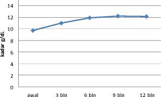 Gambar 2. Respon Hemoglobin Pasien LMK Yang Mendapat Pengobatan TKI Selama 12 Bulan