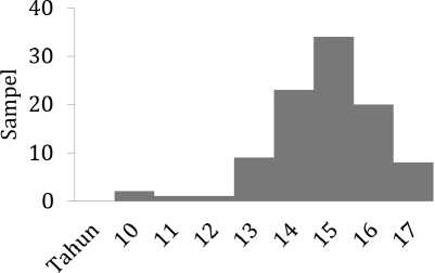 Umur responden termuda adalah 16 tahun dan tertua 19 tahun dengan rerata umur 17,2 tahun.
