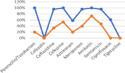 Dari hasil penelitian ini, antibiotika yang memiliki sensitivitas terendah, baik pada kelompok Non-MDR maupun pada kelompok MDR adalah Tigecycline. Tygecycline dalam penelitian ini tidak memiliki sensitivitas terhadap MDR maupun Non-MDR Pseudomonas aeruginosa. Bila dibandingkan dengan hasil penelitian sebelumnya, hasil temuan ini cenderung rendah. Seperti