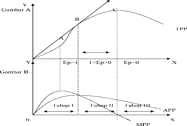 Gambar 1. Hubungan Antara Kurva TPP, MPP, APP dan Daerah-daerah Elastisitas Produksi