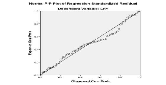 Fungsi tersebut dispesifikasi dan di estimasi ke fungsi linier dalam bentuk logaritma natural dan dilakukan pengujian untuk memenuhi kriteria ekonometrika dengan uji asumsi klasik yang meliputi uji normalitas, multikolinearitas, heterokedasitas dan kriteria statistika yang meliputi uji koefisien determinasi, uji F, dan uji t pada taraf nyata 0,05. Data dianalisis dalam bentuk logaritma natural agar tidak terjadi penyimpangan dalam uji asumsi klasik (Santosa, 2005).