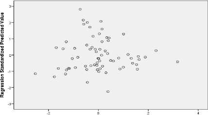 Uji heteroskedasitas pada Gambar 2. menunjukkan penyebaran dari varians residual yang terdapat pada grafik scatterplot, varians residual terpencar dan tidak membentuk pola tertentu yang berarti tidak adanya gejala homokedastitas.