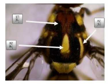 Imago lalat buah yang muncul di masing-masing wadah pemeliharaan kemudian diidentifikasi dengan menggunakan mikroskop dan dihitung jumlahnya. Identifikasi dilakukan berdasarkan ciri morfologi dari imago lalat buah menurut Siwi dan Hidayat (2004), pedoman identifikasi lalat buah dari buku “Taksonomi dan Bioekologi Lalat Buah Penting Bactrocera spp. (Diptera: Tephritidae) di Indonesia” Karakter morfologi lalat buah yang diamati berupa bagian thoraks, sayap dan abdomen.
