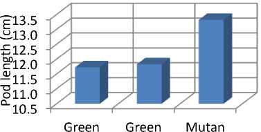 Fig. 2. Pod length of green pod 1, green pod 2 and gigas mutant cowpea