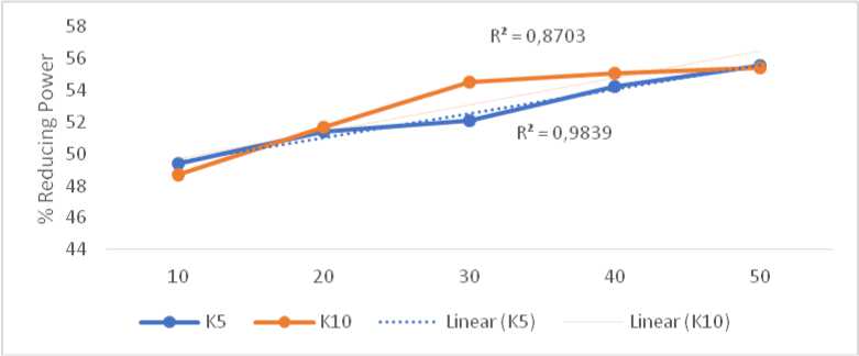 Percentage of Reducing Power (%) K5 K10 |