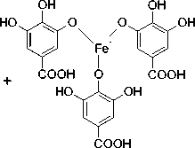 Perubahan warna hijau kehitaman terjadi akibat pembentukan senyawa komplek antara tanin dengan FeCl3 (Ikalinus dkk., 2015). Reaksi senyawa polifenol dan FeCl3 disajikan pada Gambar 3.