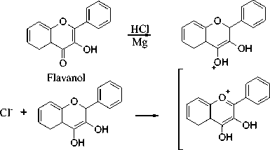 Gambar 4. Reaksi Flavonoid dengan MgHCl (Tiwari et al., 2011).