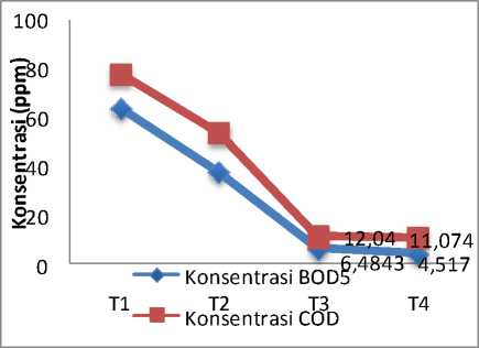Gambar 1. Nilai Penurunan Konsentrasi BOD5 dan COD