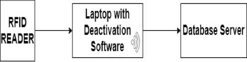 Deactivation Block DB: As shown in Figure 2, in the DB, the RFID reader deactivates the active tag on product taken and updates the centralized database through the on-board Wi-fi system.