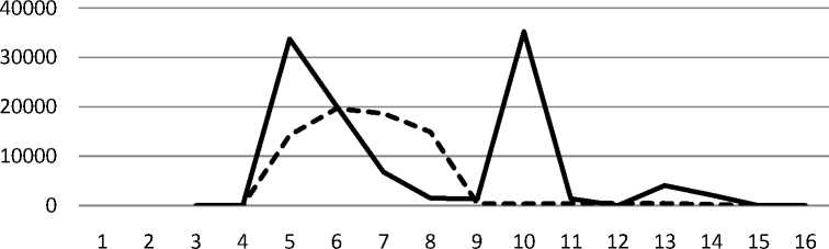 Gambar 1 Dinamika rata-rata oosit per-gram feses pada kucing yang diberikan daging dengan titer antibodi rendah dan titer antibodi tinggi