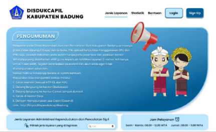 Akudicari (Administrasi Kependudukan Daftar Sendiri dan Cetak Sendiri) ialah website yang digunakan oleh Kabupaten Badung sebagai inovasi pelayanan administrasi kependudukan yang dilaksankan mempergunakan media elektronik yang berbasis web yang memanfaatkan fasilitas teknologi dan informasi. Web dapat menampung serta menyediakan berbagai informasi yang diperlukan dengan layanan yang luas, karena informasi menyebar secara global melalui website. Masing-masing situs web ini menyediakan informasinya sendiri. Juga memiliki kemampuan untuk menampilkan teks, grafik, suara dan video (Dewantara et al., 2019). Inovasi yang dilakukan mempermudah dan mendekatkan pelayanan kepada masyarakat, dimana untuk proses pengurusan dokumen kependudukan masyarakat hanya dengan mengakses website AKUDICARI dari rumah masing-masing serta hasil pelayanan akan dikirim langsung ke whatsapp masyarakat (kecuali KTP dan KIA karena menggunakan security printing, pencetakan masih dilakukan di ktr disdukcapil dan atau pelayanan umum di Kecamatan) selain kedua dokumen tersebut (KTP, KIA) masyarakat bisa langsung mencetak dirumah masing-masing atau di tempat lain.