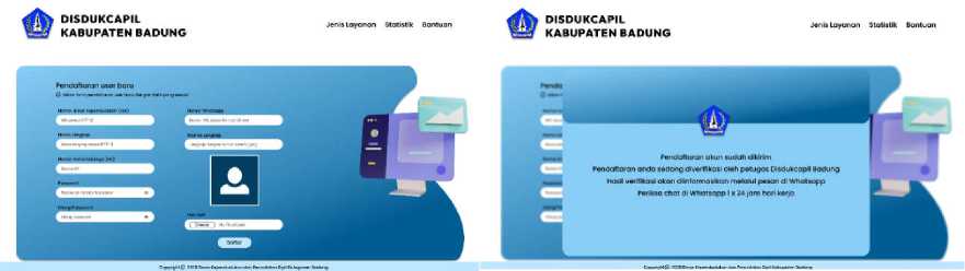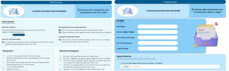 Gambar 5 merupakan perbaikan pada halaman detail layanan. Pertimbangan untuk melakukan perbaikan pada halaman detail layanan yaitu berdasarkan saran dari pengguna dimana untuk membuat tampilan terutama di bagian teks agar dikelompokkan dan juga gambar dan warna agar dibuat senada dengan jenis. Tampilan selanjutnya perbaikan pada halaman pengajuan baru. Berdasarkan saran dari pengguna dimana untuk membuat tampilan lebih menarik terutama di bagian mengisi data identitas dan pada saat mengupload dokumen agar pengguna tidak kebingungan syarat yang mana saja yang perlu untuk mengupload dokumen
