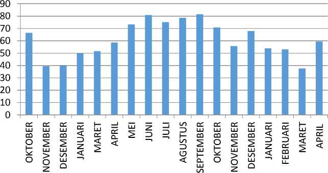 Grafik 1. Tingkat Hunian Kamar (Occupancy) Golden Tulip Devins Seminyak Oktober 2015 – April 2017