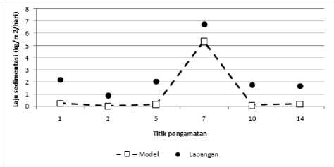 Validasi laju sedimentasi dilakukan dengan membandingkan antara laju sedimentasi hasil simulasi model dengan observasi lapangan seperti
