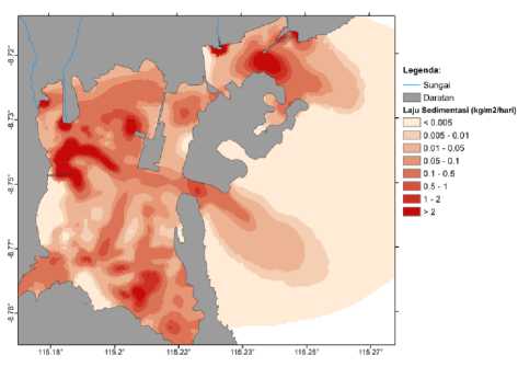 Pola sebaran laju sedimentasi ditunjukkan pada Gambar 12. Laju sedimentasi di Perairan Teluk