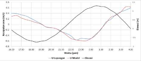 Gambar 8. Grafik validasi arus komponen timur-barat (U)