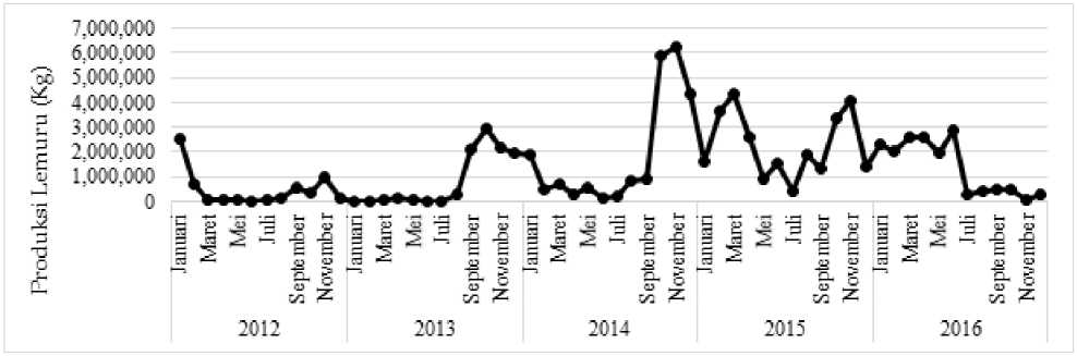 Gambar 2. Total Hasil Produksi Penangkapan Ikan lemuru di perairan Selat Bali, Januari 2012 – Desember 2016