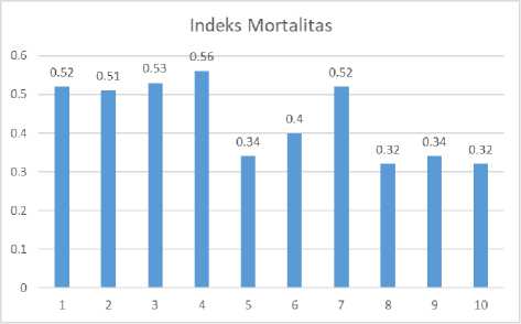 Gambar 8. Indeks mortalitas terumbu karang di seluruh stasiun penelitian