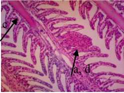Gambaran histologi insang yang normal terdiri dari beberapa filamen insang dan banyaknya lamella. Struktur lamella terdiri dari sel-sel epitel yang tipis pada bagian luar, membran dasar dan sel tiang untuk penyangga pada bagian dalam yang biasa disebut sebagai lamella primer dan lamella sekunder (Riauwaty, 2012). Dari hasil pengamatan histologi didapati terjadinya
