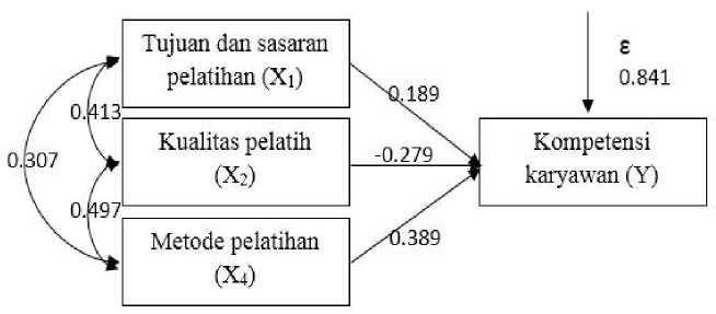 Penelitian ini bertujuan untuk menganalisis pengaruh pelatihan terhadap kompetensi karyawan yang dilakukan di PT. Len Industri (Persero) Bandung. Penentuan besarnya sampel pada penelitian ini menggunakan metode teknik Slovin dengan tingkat kesalahan sebesar 5%. Teknik analisis data yang digunakan adalah Path Analysis yang diolah dengan software SPSS ver.20 for windows. Data dikumpulkan melalui kuesioner terhadap 192 responden karyawan PT. Len Industri (Persero) Bandung. Hasil pengolahan data menunjukkan bahwa variabel pelatihan secara simultan berpengaruh signifikan terhadap kompetensi karyawan, namun secara parsial tidak berpengaruh signifikan terhadap kompetensi karyawan. Variabel yang tidak berpengaruh signifikan tersebut yaitu variabel materi pelatihan dan peserta pelatihan.