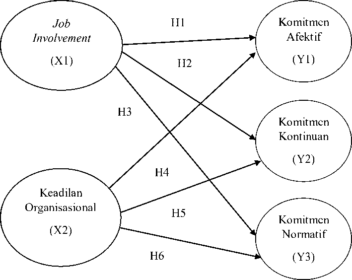 Kata kunci: job involvement, keadilan organisasional, komitmen afektif, komitmen kontinuan, komitmen normatif