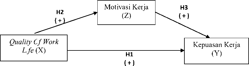 Pengaruh Quality Of Work Life (QWL) terhadap Job Statisfaction diperoleh hasil regresi bernilai positif dan signifikan dimana dengan meningkatkan Quality Of Work Life (QWL) maka akan berpengaruh terhadap peningkatan kepuasan kerja karyawan (Pramdhana, 2013). Kepuasan kerja dapat meningkat diimbangi dengan meningkatnya kondisi kerja, kesejahteraan umum, keseimbangan kehidupan kerja dan prospek karir, kompensasi serta pelatihan dan pengembangan (Swapna & Gomathi, 2013). H1: Quality Of Work Life berpengaruh positif
