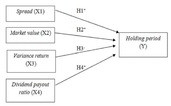 Berdasarkan uraian yang sudah dijelaskan, maka penelitian ini akan meneliti mengenai pengaruh variabel bid-ask spread, market value, variance return dan dividend payout ratio terhadap holding period saham. Adapun jenis saham yang dipilih
