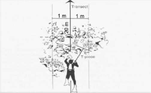 Gambar 2. Skema pengambilan data menggunakan sensus visual ikan karang (English et al., 1997)