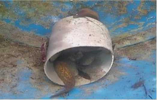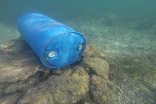 Drum tersebut diisi abalon dengan jumlah tebar 40 ekor abalon/drum dengan ukuran rata-rata mencapai 3 cm sampai 6 cm. Drum abalon tersebut menggunakan tutup jaring atau waring dengan ukuran mata jaring 2 cm. Hal ini dilakukan agar abalon tidak dapat keluar dari drum. Pada saat pengambilan data, penutup jaring akan dibuka agar predator lebih leluasa untuk masuk ke dalam tempat tinggal abalon Haliotis squamata tersebut. Selain itu, sisi dalam drum abalone ditempatkan sebuah kamera bawah laut untuk membantu perekaman pemangsaan abalon yang terjadi di dalam area drum abalon.