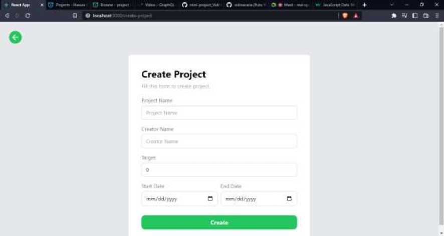 2. Jika pengguna menekan tombol Create Project maka akan diarahkan ke halaman form create project.