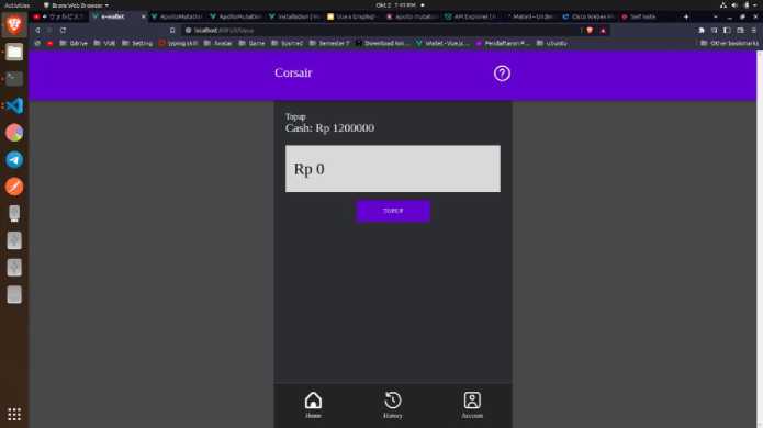 Input field berupa angka Tombol topup di klik untuk menambah saldo kedalam e-wallet sebesar jumlah inputan |