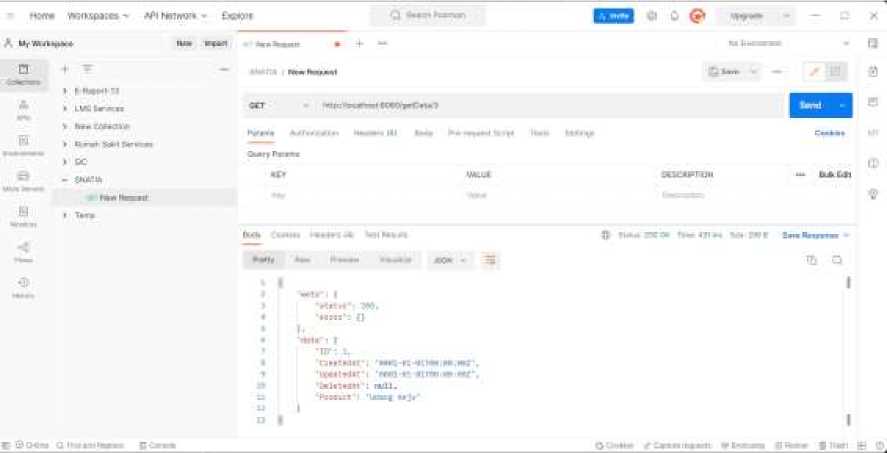 Pada pengujian di Tabel 1. dapat kita lihat bahwa user dapat melakukan request terhadap REST API, hal tersebut dibuktikan pada Gambar 2. Pengujian lainnya juga dilakukan dengan berhubungan dengan databases, dimana dapat kita lihat database bisa diakses oleh seseorang yang memiliki role Database Administrator (DBA) dengan menampilkan database seperti pada Gambar 3 dan 4 dan data tersebut tidaklah tersimpan pada program.