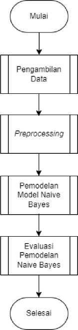 terakhir adalah pengubahan kata dari yang bentuknya tidak baku menjadi kata dengan bentuk baku (3) Kemudian akan dilanjutkan dengan pembuatan model Naïve Bayes.
