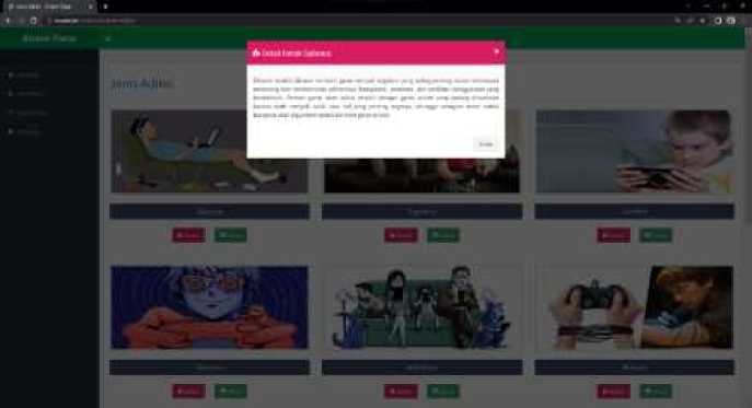 Game online di Indonesia paling banyak diminati oleh anak-anak maupun orang dewasa di Indonesia. Menurut Ferdinand Setu, Plt. Kepala Departemen Humas mengatakan, di Indonesia terdapat sekitar 142 juta pengguna internet, di mana sekitar 30 juta orang anak aktif bermain game. Organisasi Kesehatan Dunia atau World Health Organization (WHO) mendefinisikan kecanduan game sebagai gangguan mental adiktif dalam versi terbaru ICD-11 untuk pertama kalinya dalam edisi terbaru International Statistical Classification of Diseases (ICD) . gangguan perilaku atau kebiasaan atau kecanduan. Sistem pakar adalah bagian dari sistem kecerdasan buatan yang menghasilkan perangkat lunak atau perangkat lunak berbasis komputer yang dikembangkan berdasarkan fakta, rekayasa, dan sains untuk memutuskan masalah yang biasanya hanya tersedia bagi para ahli atau pakar di bidangnya yang dapat menyelesaikannya. Sistem Pakar adalah pakar sistem, hanya pakar di bidangnya. perangkat lunak yang dirancang untuk memecahkan kemungkinan masalah kompleks Salah satu metode presentasi yang paling umum adalah penalaran kasus dengan metode Case base reasoning.