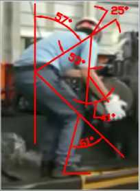 Same as the upper arm, position the lower arm because it no longer holds the load so the hand angle becomes in the range of 60 ° -100 ° so the R.E.B.A score becomes 1 from the original is 2.