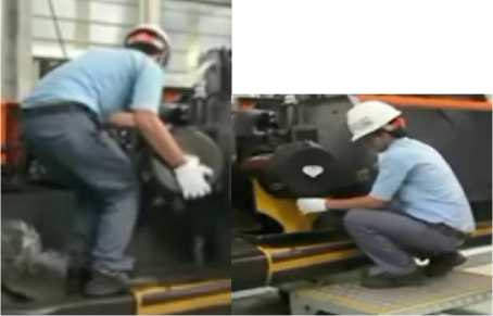 When carrying out the installation, the operator holds the weight of the components on his thighs in a kneeling position. This kind of work posture based on analysis using the methods that have been done turns out to need to improve work posture.