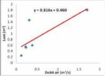 Saluran pembawa pada PLTMH Baru memiliki bentuk yang menyerupai huruf U dengan tujuan agar rugi-rugi saluran menjadi kecil. Untuk menentukan ukuran penampangnya, digunakan data sekunder yang merupakan luas penampang dari beberapa PLTMH yaitu PLTMH Brumbung [11], PLTMH Dukuh Pekuluran [12], PLTMH Karangasem [13], PLTMH Kuta Malaka [14], PLTMH Alue Meuraksa [15] dan PLTMH Pomoman [16]. Data-data tersebut disusun dalam bentuk grafik, dengan pendekatan interpolasi diperoleh persamaan linier yang menunjukkan hubungan antara luas penampang terhadap debit desain. Persamaan tersebut terdapat pada Gambar 4. Dengan menggunakan persamaan tersebut diperoleh hasil yaitu luas penampang saluran pembawa PLTMH Baru adalah 0,97 m2 ≈ 1 m2, dimana lebarnya 1 m dan tinggi 1 m.