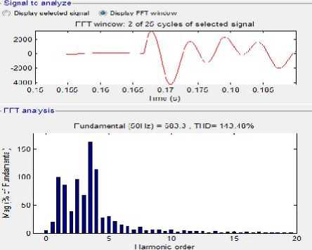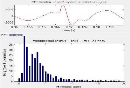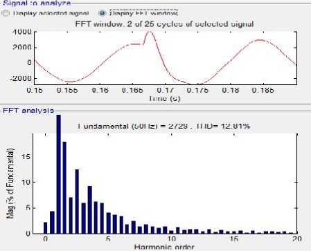 Gambar 6. Sinyal dan spektrum arus harmonisa menggunakan filter aktif
