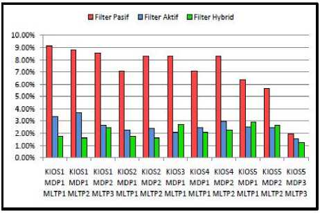 Berdasarkan hasil penelitian penggunaan filter pasif oleh Yuliana (2009) yang dilakukan di RSUP Sanglah, menunjukan kandungan THDi pada MDP2 MLTP2 adalah 2.34%, MDP3 MLTP1 adalah 2,6%, MDP3 MLTP2 adalah 2,83%, MDP4 MLTP2 adalah 2,97%, MDP5 MLTP2 adalah 2,66%, dan MDP5 MLTP3 adalah 1,41% [2].