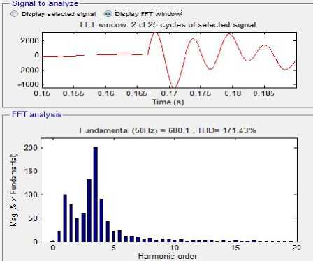 Hasil simulasi dari penggunaan filter hybrid shunt tersebut dalam menaggulangi gangguan resonansi yang terjadi dapat dilihat pada gambar 8 dan 9 di bawah ini.