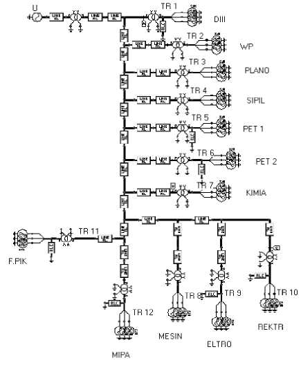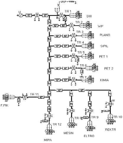 Gambar 1. Tampilan model rangkaian sistem jaringan tegangan menengah kampus Undip Tembalang .