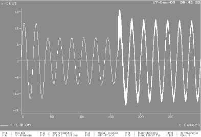 Hasil simulasi ditunjukkan pada gambar 7 – 9 yang memperlihatkan amplitudo tegangan fasa – netral pada cos ф = 1 di terminal primer transformator DIII Teknik, T.Kimia, Rektorat. Simulasi gangguan terjadi pada terminal beban SDP PPE 2 fasa ‘A’ untuk waktu 6 cycle ( 120 mS ) sebelum alat proteksi bekerja.