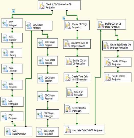 Jika fungsi CDC belum diaktifkan maka akan dilakukan proses pembuatan dan inisialisasi data pada basis data StagePenjualan dan basis data DDSPenjualan.