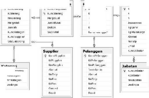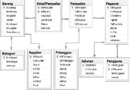 Rancangan basis data Sistem Informasi Retail bagian Penjualan yang akan dikembangkan pada sisi OLTP dapat dilihat pada Entity Relationship Diagram (ERD) pada gambar 2: