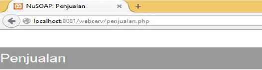 Setelah NRTDWH terbentuk kemudian dirancang web service berbasis protokol SOAP. Web service ini dinamakan Penjualan. Web service Penjualan yang sudah berjalan pada web server Apache dapat dilihat pada gambar 10: