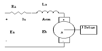 Dengan mengabaikan La, persamaan tegangan pada rangkaian jangkar (armature) dituliskan :