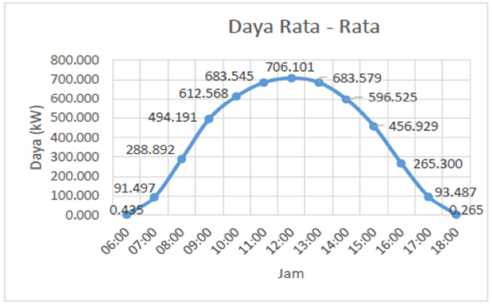 Dapat dilihat daya tertinggi yang dihasilkan adalah pada pukul 12:00 dengan 706,101 kW dan data ini yang akan digunakan dalam simulasi.