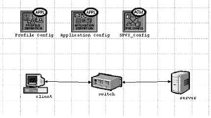 OPNET 7.0 imports self-similar synthetic traffic as a user-defined background routed traffic. Data of the self-similar traffic is converted into CSV format and then it can be read by OPNET. The traffic flows from client as a source to server as a destination. The model