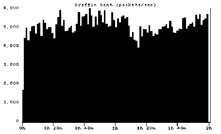 The primary purpose of the background traffic is to model the effect of general traffic in the network on selected traffic of interest. This effect primarily takes the form of delay. In other words, the background traffic causes additional delay for explicitly modelled traffic. The background traffic also causes many other statistics. Utilization and throughput of at least some links, for example, increase with additional traffic in the network. Average buffer sizes in routers would also be expected to increase. Table 1 lists some statistics that may be useful in verifying if the configured traffic meets the expected amount.